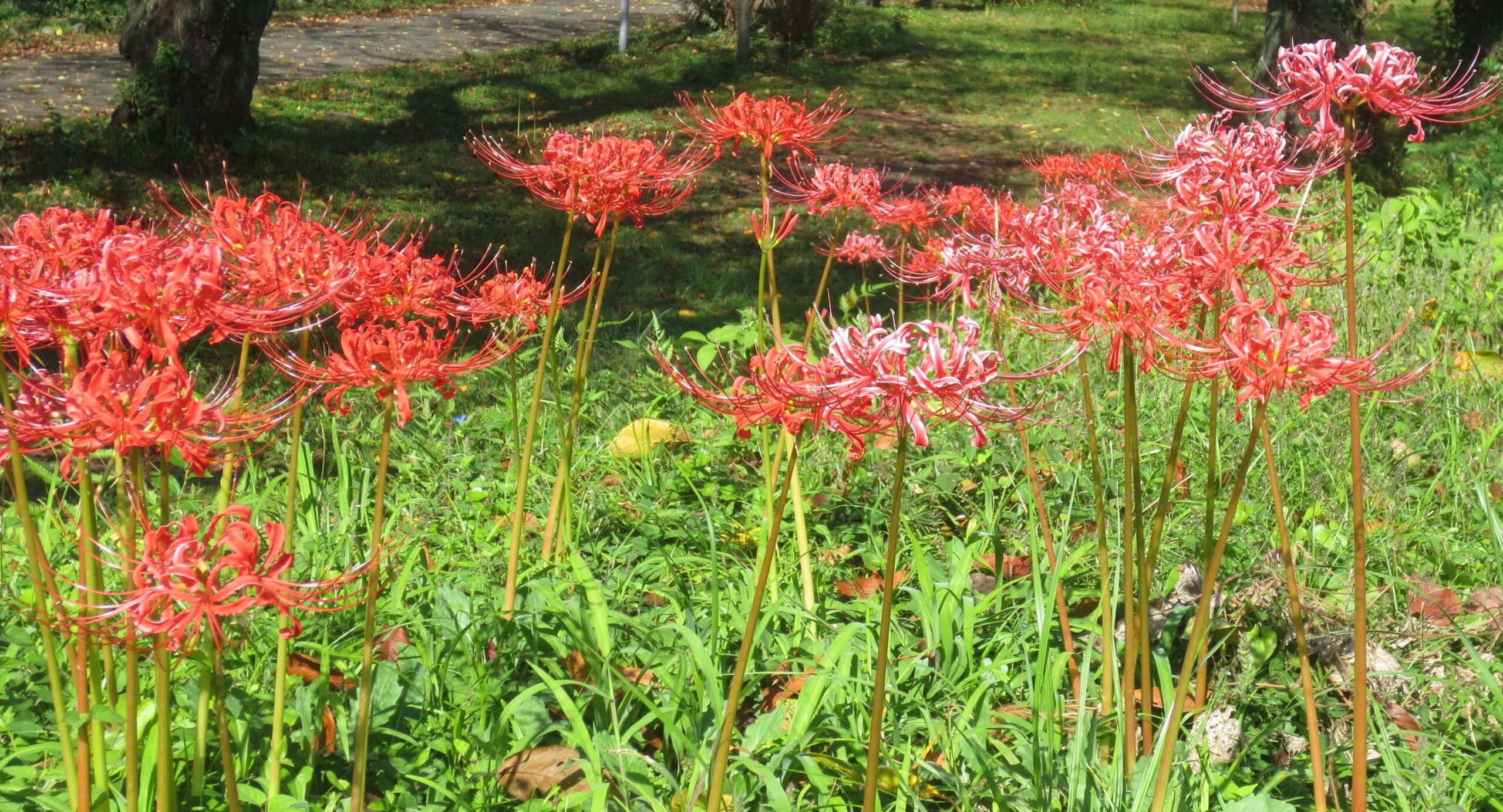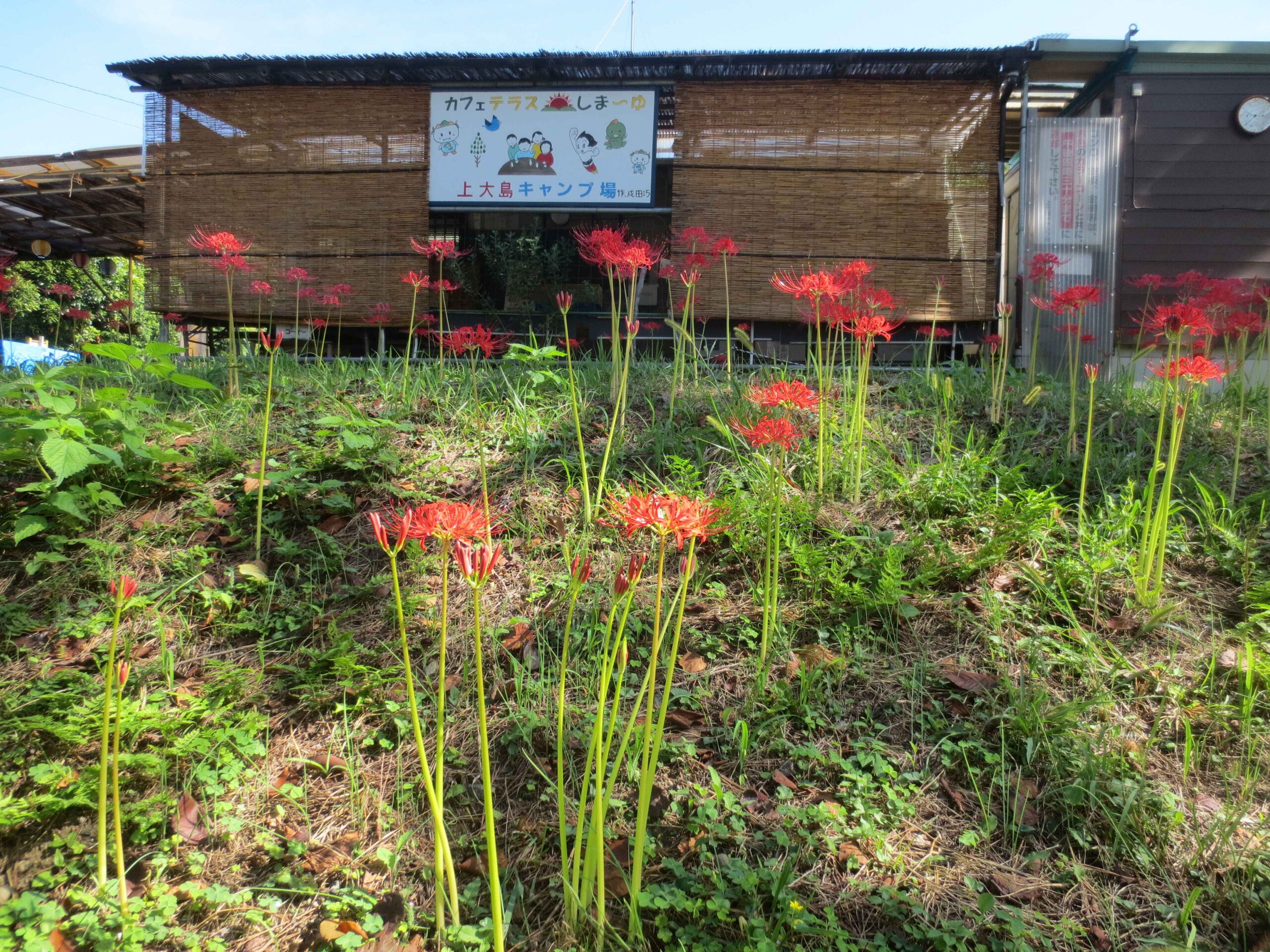 お彼岸を過ぎましたが、上大島キャンプ場の彼岸花はこれからが見頃です。