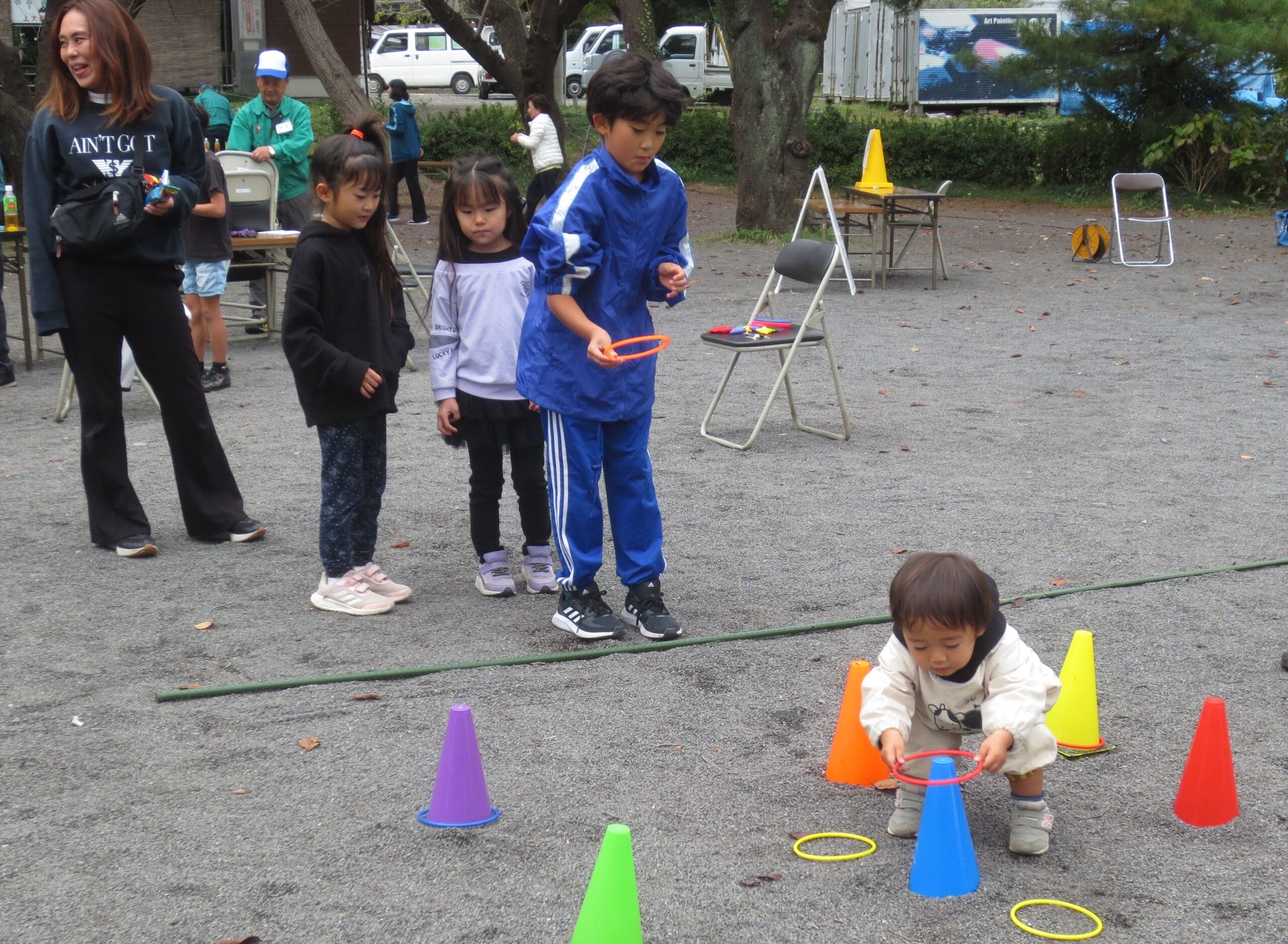 ・輪投げ お兄ちゃん、はずしたの入れてあげるネ!