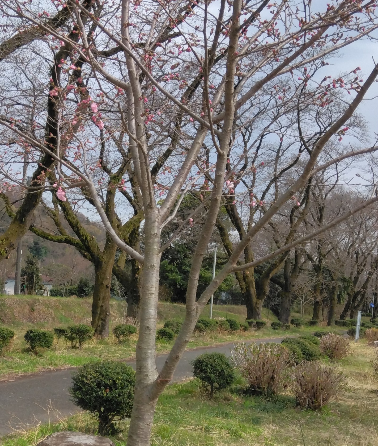 若木ですが見ごたえがあります。第1陣の開花は河津桜と大漁桜でしたが、神代アケ